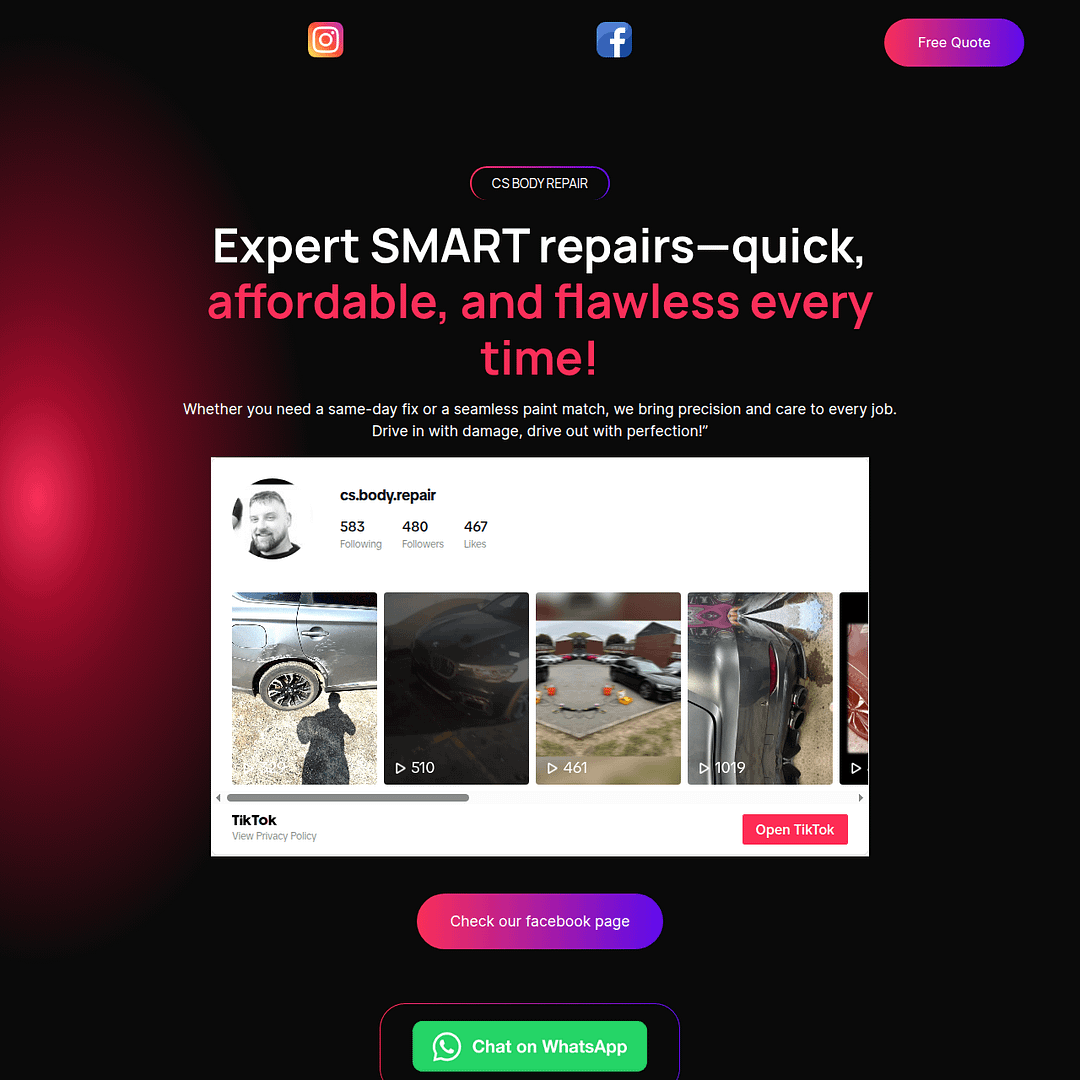We partnered with CS Body Repair, a remote smart body repair business, to bring their brand to life online. From the ground up, we delivered a clean, modern website, created a bold visual identity, and launched targeted digital campaigns to drive visibility and customer bookings. The result? A mobile repair brand that looks sharp, runs smooth, and reaches customers right where they are.