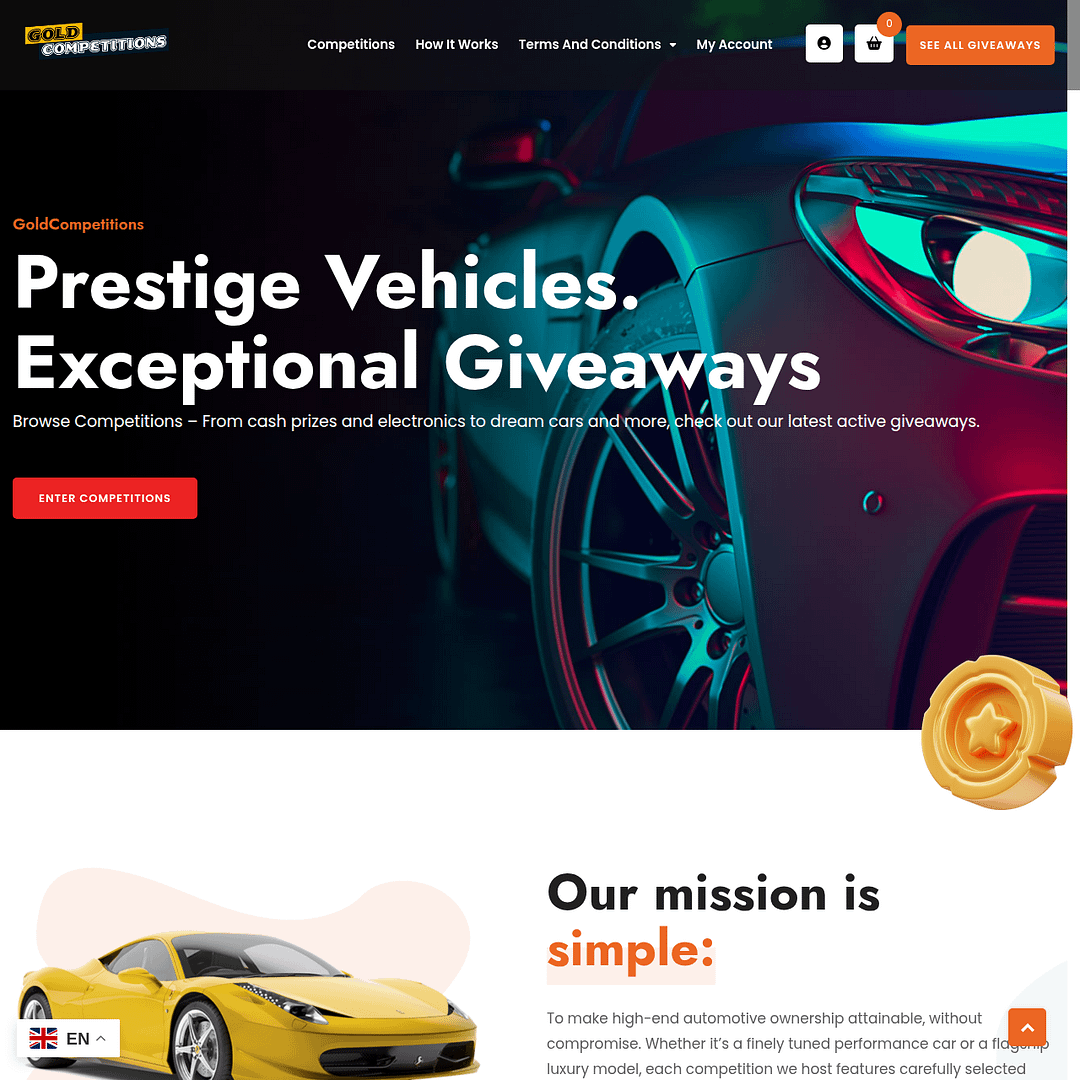 GoldCompetition.com is a fully branded and marketed lottery competition platform designed to deliver a seamless, high-engagement user experience. The project included complete brand identity creation, UI/UX design, website development, and marketing structure.