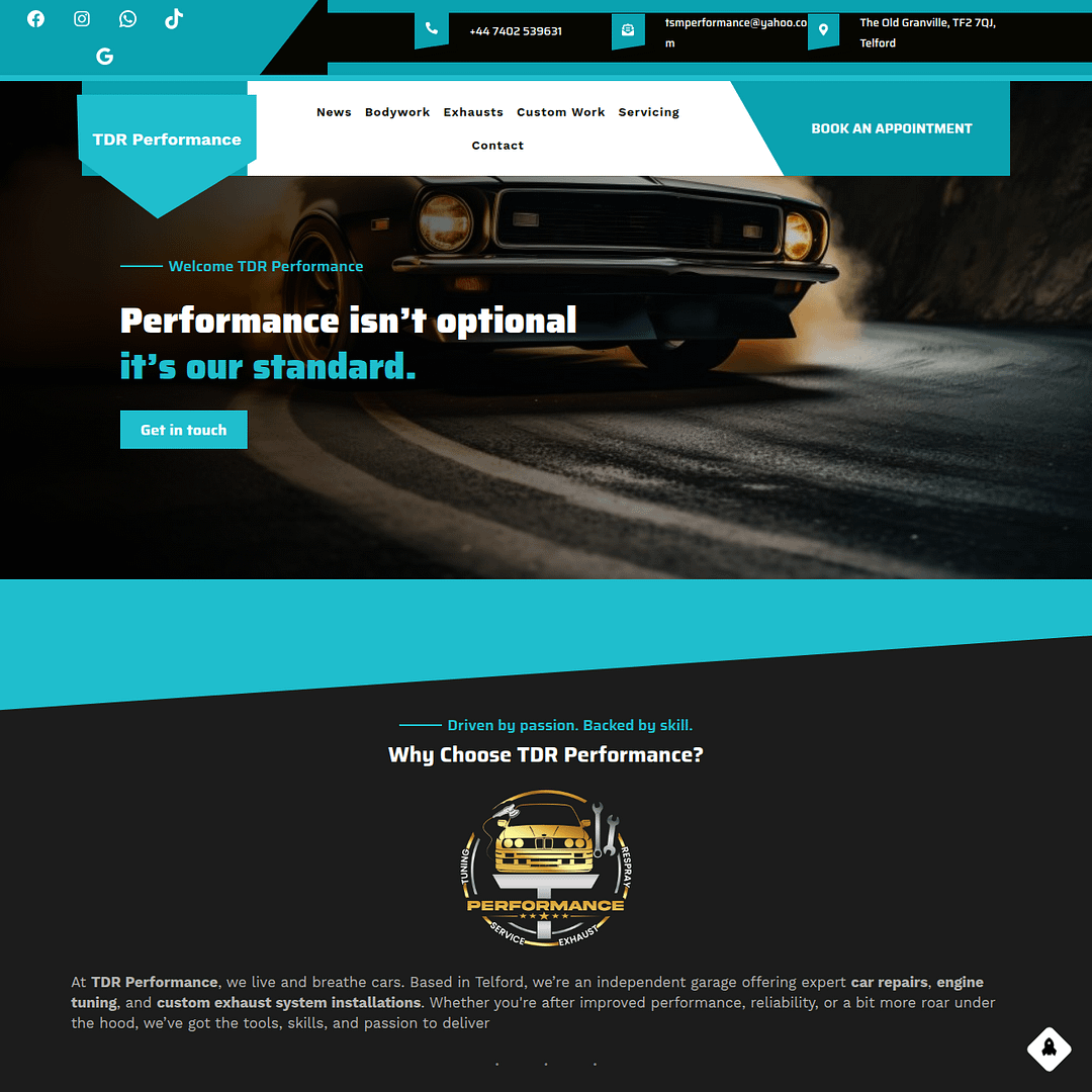 TDRPerformance.co.uk is a specialist automotive garage website built to reflect precision, power, and technical expertise. The project included complete branding, website design, and marketing structure, tailored for a high-performance mechanical garage.
